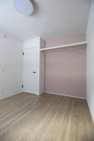 パステルカラーのアクセントカラーがかわいらしい洋室と