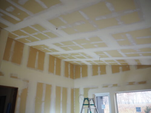 クロス工事ではまずパテ処理を行い、