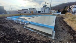 基礎の外側を75㎜、内側を40㎜の厚さの断熱材でサンドウィッチしています。