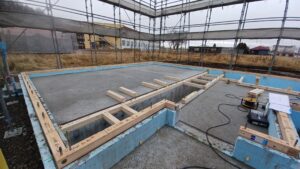 前回までのブログで基礎の型枠が外され、