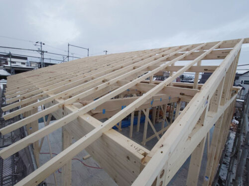 建て込み後、屋根の躯体を造っていきます。