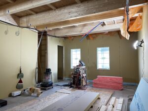 このあとは、24時間換気のダクト工事、天井の断熱などを行う予定となります。