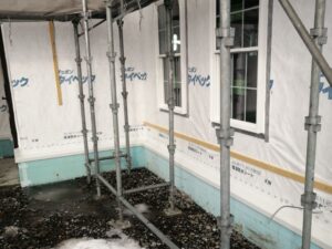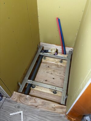 シャワールームの架台、給排水設備の工事も進められています。