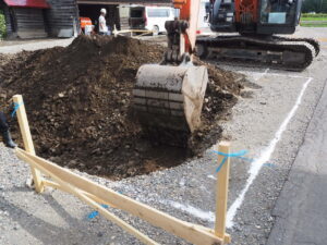 地面を深く掘り、水道の本管に繋いでいきます。
