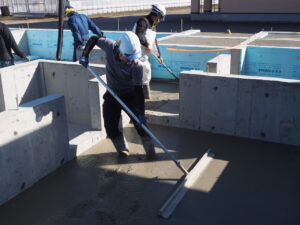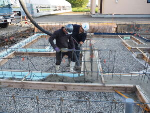 最後に防湿コンクリートの打設を行い、基礎の完成となります。