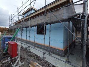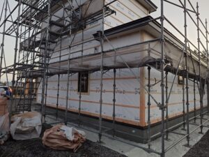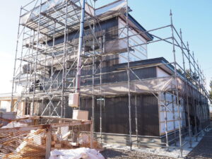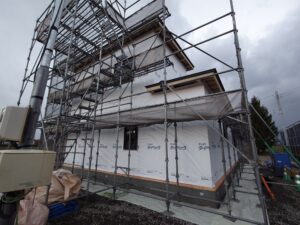 その後外部の仕上げ(電気やコーキングなど)が終わりますと足場が外れます。