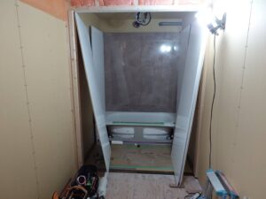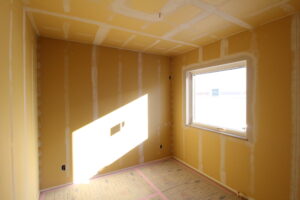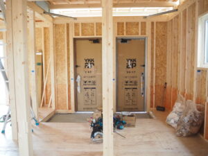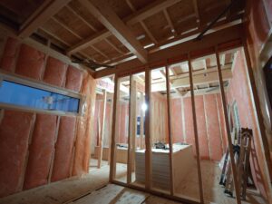 確認後、壁に下地を入れたり気密シートを張っていきます。