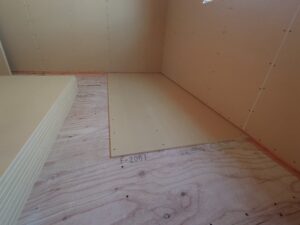 床に石膏ボードを張っていきます。